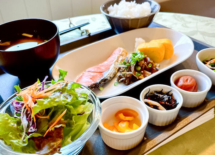 前菜パスタメイン(肉もしくは魚)パンデザートコーヒーまたは紅茶 フレンチトースト、ホットサンド、和定食の3種類から中からお選びいただけます。1番人気は、シェフこだわりの『ふわふわフレンチトースト』。 ダイニングには、ホットコーヒー・ミルク・オレンジジュースなどのお飲み物もご用意しております。